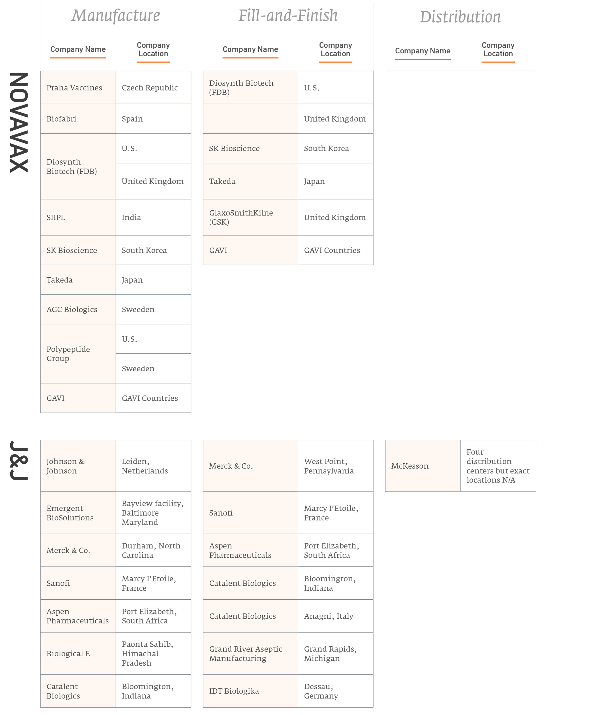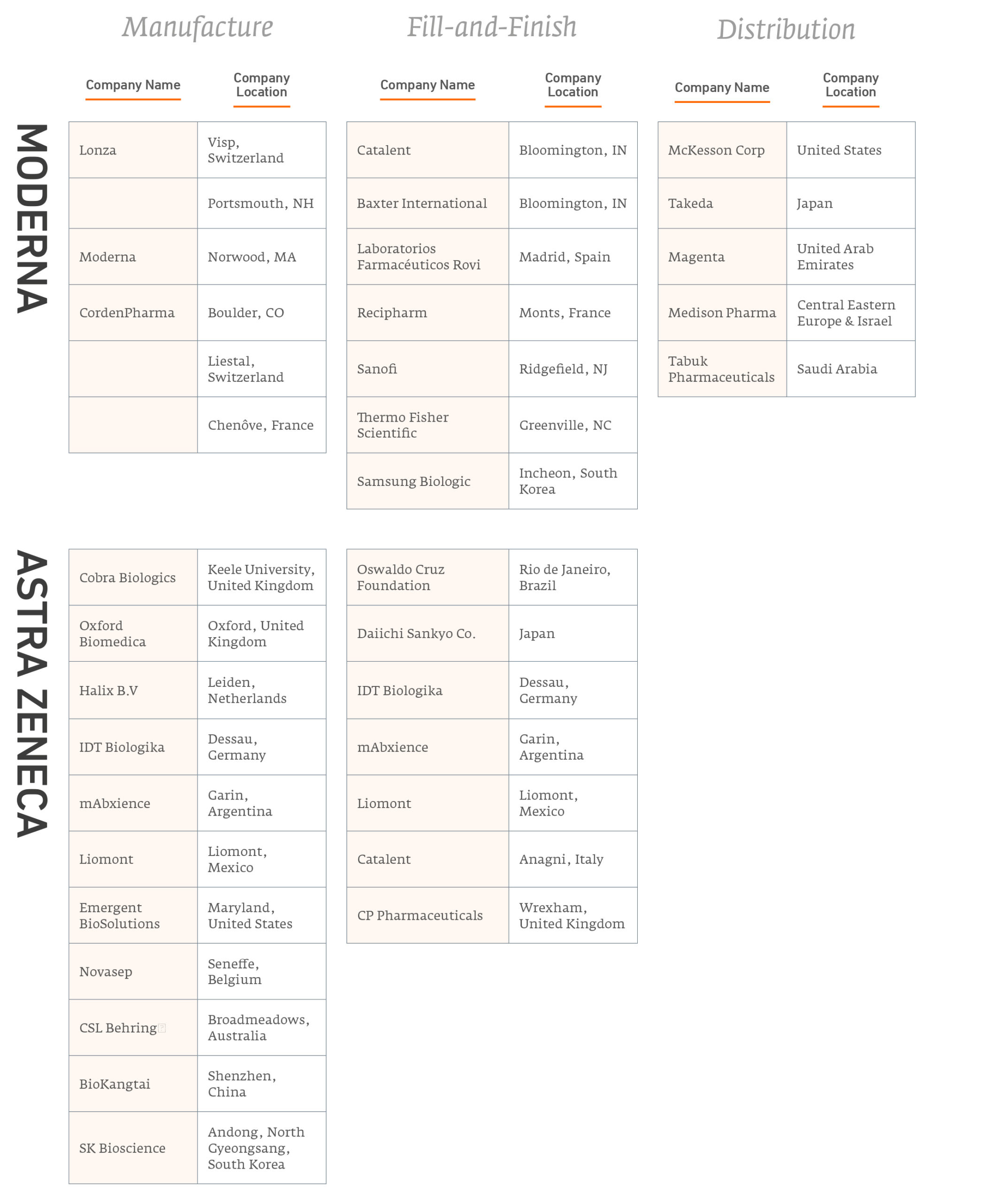 [3] Andrea Taylor et al., Issue Brief: Deciphering the Manufacturing Landscape for Covid-19 Vaccines, Duke Global Health Innovation Center, March 2021, https://launchandscalefaster.org/sites/default/files/documents/Speedometer%20Issue%20Brief-COVID%20Manufacturing%20Landscape%2019%20March%2021.pdf